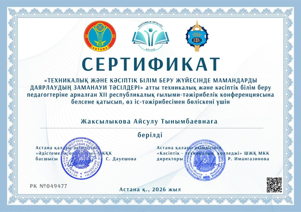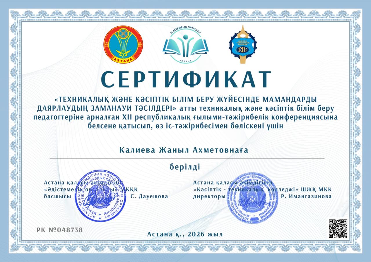 Техникалық және кәсіптік білім беру жүйесінде мамандарды даярлаудың замануи тәсілдері