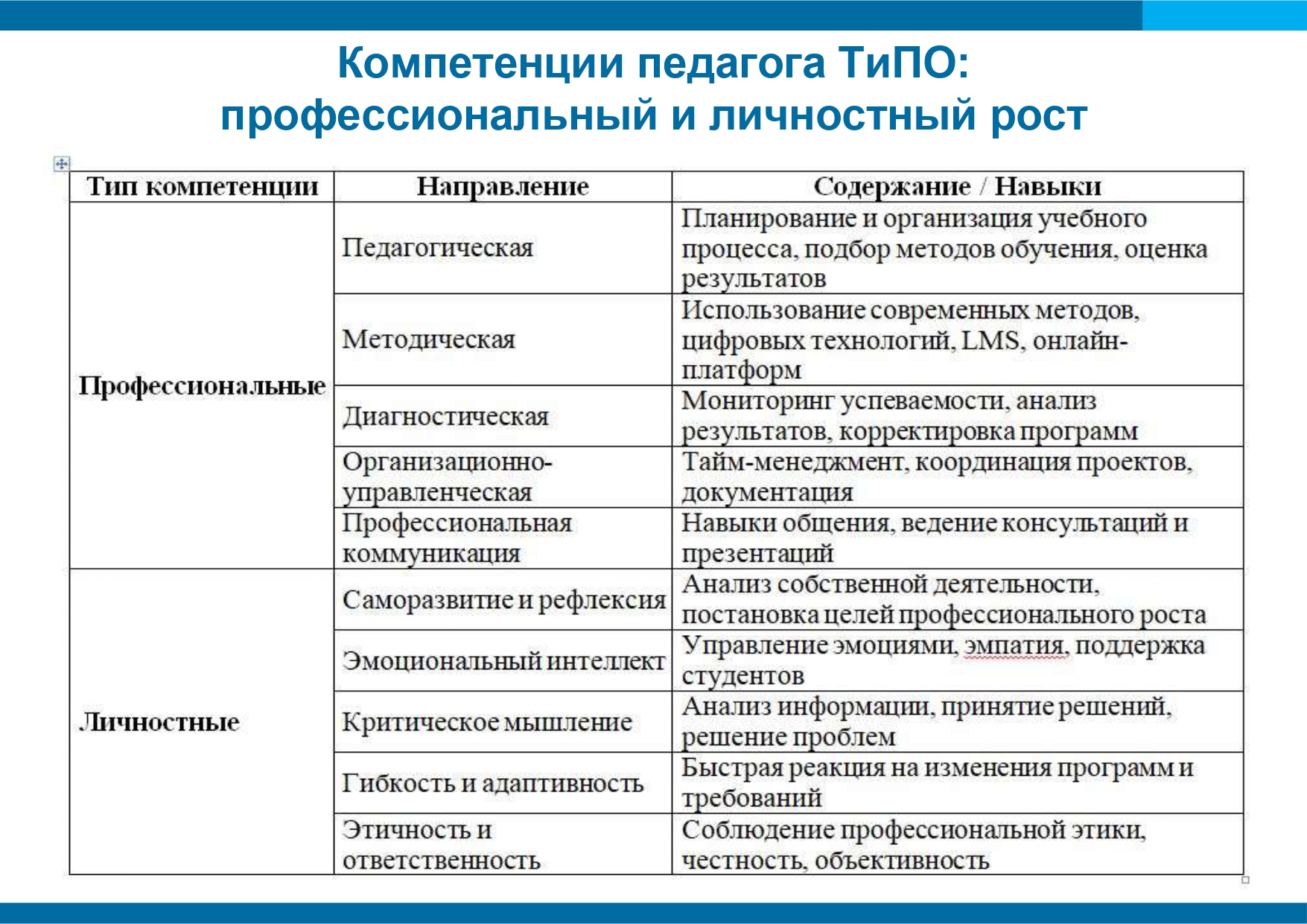 Компетенции педагога ТиПО: профессиональный и личностный рост
