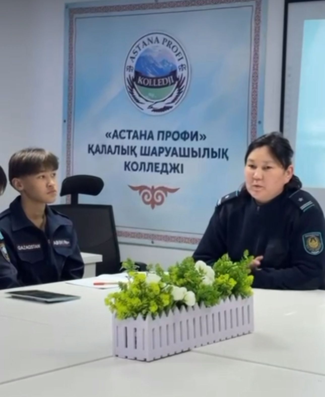 «Адал азамат» біртұтас тәрбие бағдарламасы "ЗАҢ ЖӘНЕ ТӘРТІП" құндылығы аясында колледжде Астана қаласы Сарыарқа ауданы ПБ ҚҚБ отбасылық зорлық зомбылыққа қарсы күрес бөлімше бастығы Ахметова Гүлмира Қайыржанқызының қатысуымен» Интернет алаяқтығынан қорғандыру жолдары» тақырыбында әңгіме жүргізілді.