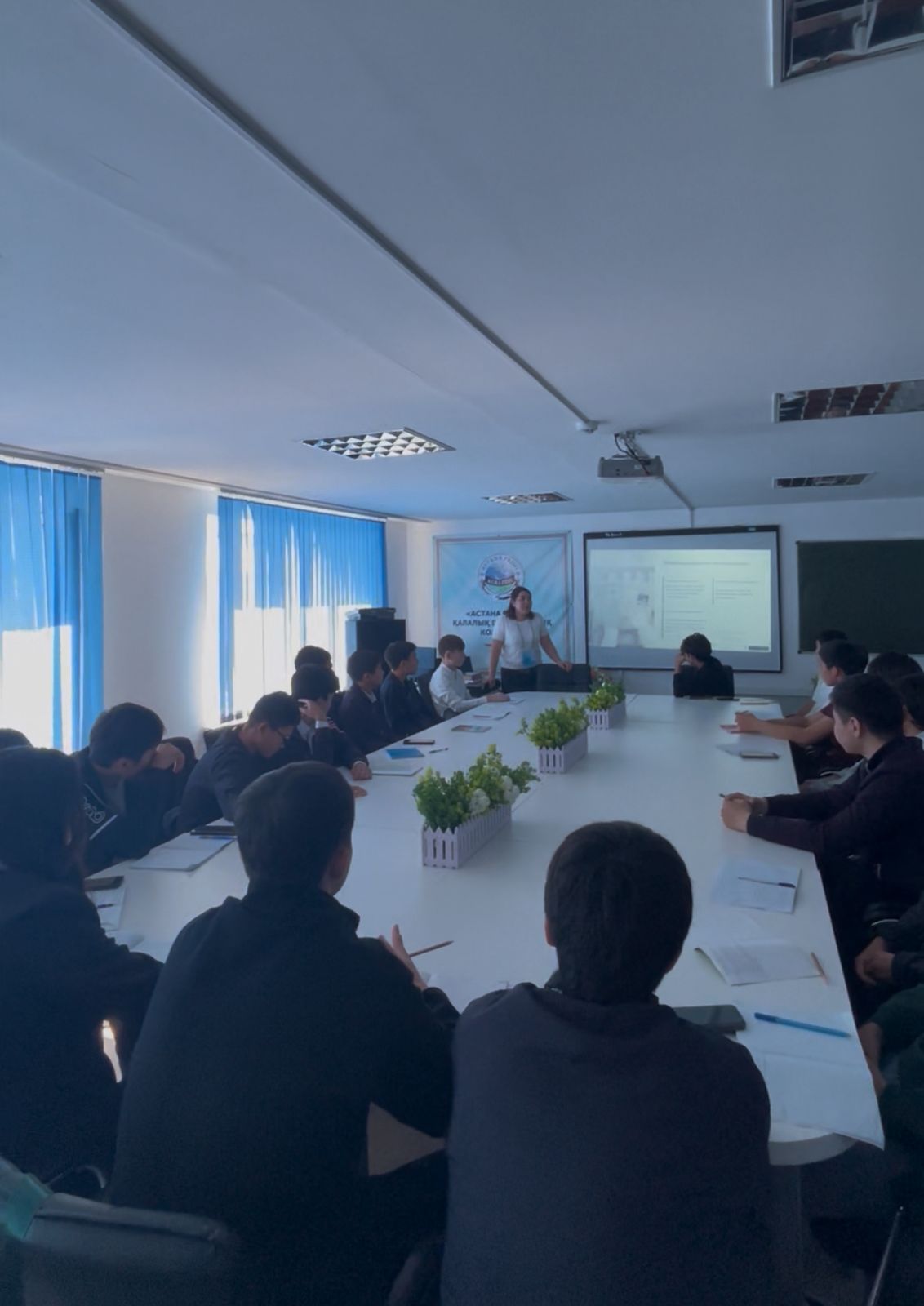 24.09.2025 жыл “Адал Азамат” біртұтас тәрбие бағдарламасының “Балалар кітапханасы жобасы” жоспары негізінде 1 курс студенттерімен “Тілім менің қазынам” атты дәріс түрінде әлеуметтік пәндер оқытушысы Аманжолова А.А. іс-шара өткізді. Іс-шара барысында қазақ тілінің тарихы, әдебиетіміздегі тіл тақырыбы, ұлы ойшылдар мен ақын-жазушылардың тіл жайлы еңбектері мен шығармалары қамтылды. Студенттер ана тіліміздің қоғамдағы орны, тарих пен әдебиеттегі маңызы туралы құнды деректермен танысып, өз ойларын ортаға салды.